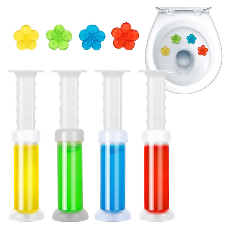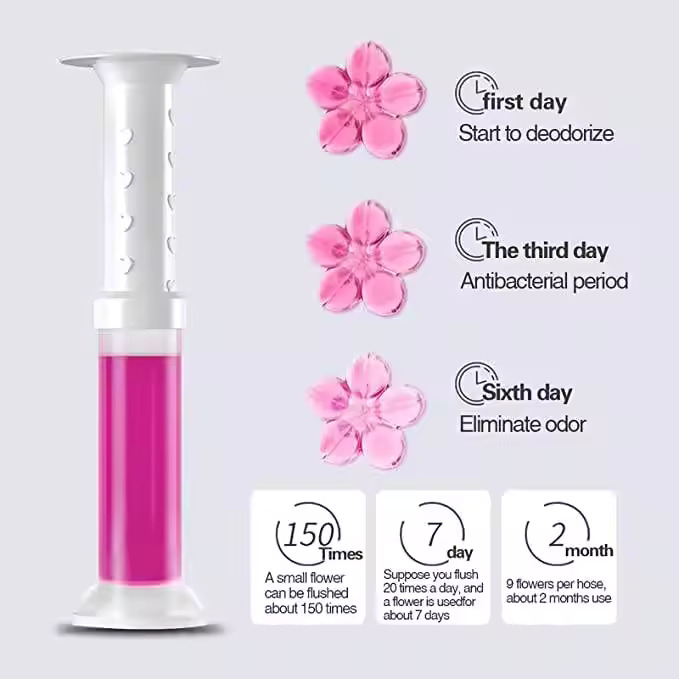 Flower Gel Toilet Air Freshener and Cleaner is a convenient and effective way to keep your toilet fresh, clean, and fragrant. This toilet gel stamp provides an easy-to-apply solution that not only removes tough stains but also releases a pleasant floral scent, ensuring your bathroom smells clean and fresh with every flush. Perfect for maintaining hygiene and freshness without the hassle of scrubbing.